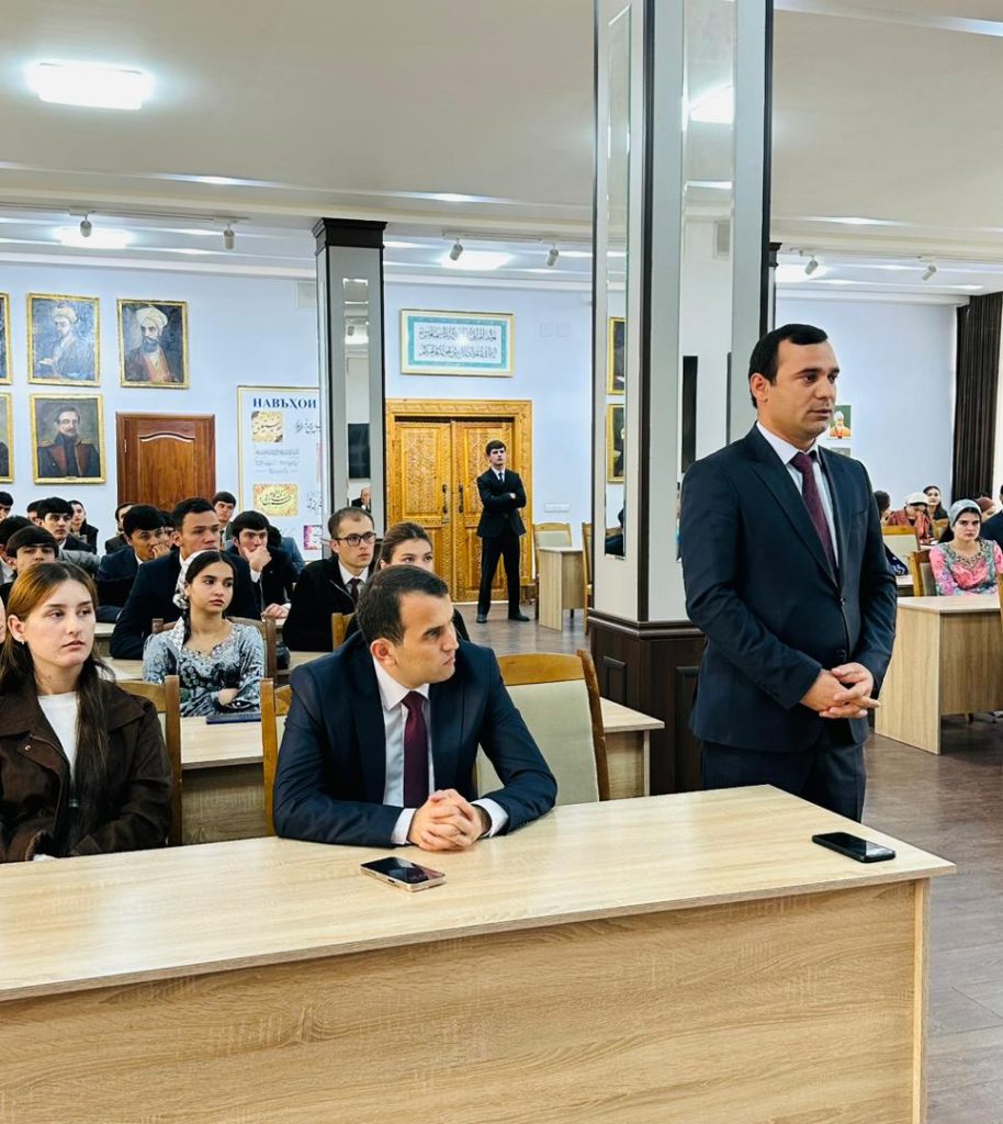 Имрӯз (29.10.2025) дар доираи нақшаи чорабиниҳои Донишгоҳи миллии Тоҷикистон намояндаи Кумитаи дин, танзими анъана ва ҷашну маросими назди Ҳукумати Ҷумҳурии Тоҷикистон Хоҷамирзода Муслиҳиддин бо зумрае аз устодону донишҷӯёни факултетҳои Донишгоҳ вохӯрӣ намуд. Дар вохӯрӣ намояндагони Раёсати тарбияи Донишгоҳ, устодону донишҷӯёни факултетҳои филологияи тоҷик, филологияи рус, журналистика, забонҳои Осиё ва Аврупо ширкат варзиданд.