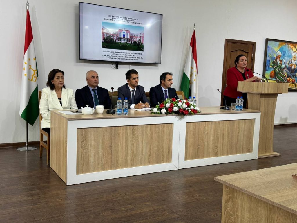 Бо ташаббуси кафедраи услубшиносӣ ва таҳрири адабии факултети журналистикаи ДМТ конференсияи ҷумҳуриявии илмию амалӣ дар мавзуи “Масъалаҳои мубрами медиалингвистика ва услубшиносӣ дар замони муосир” бахшида ба Рӯзи забон баргузор гардид.