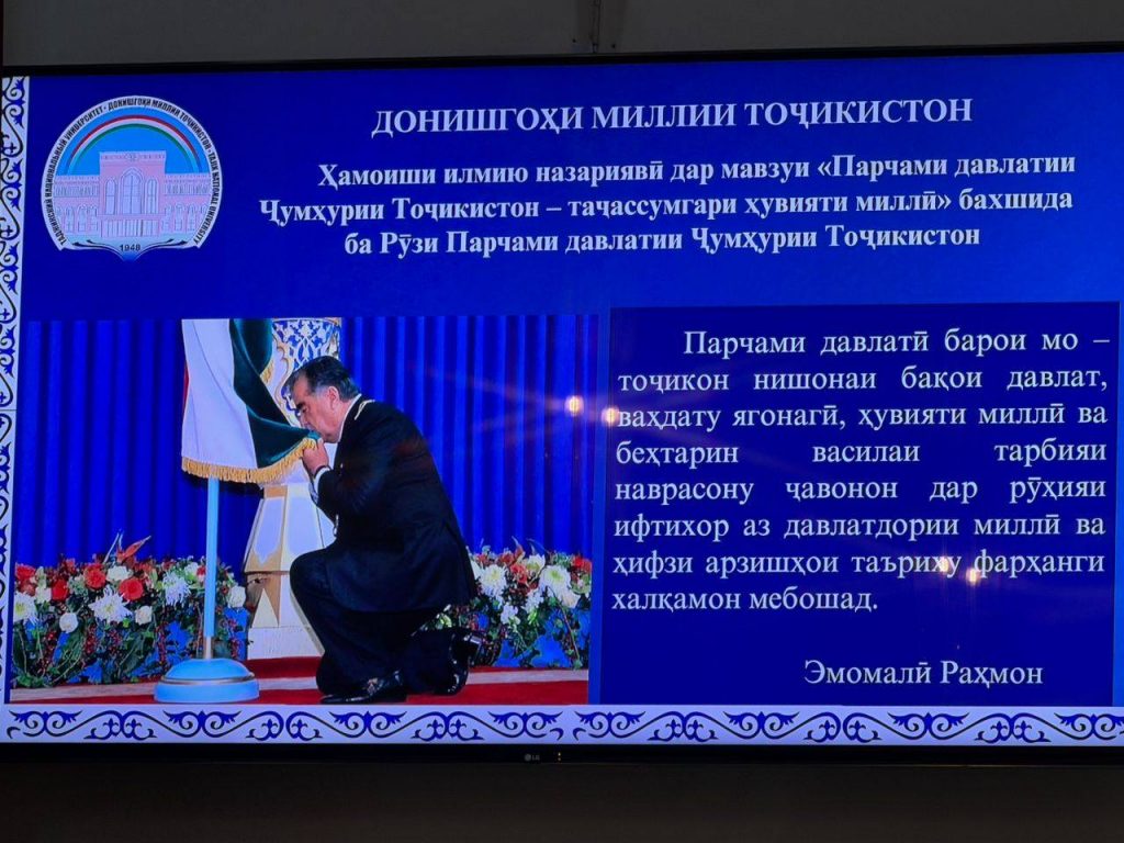 Имрӯз дар донишгоҳи миллӣ бахшида ба Рўзи Парчами давлатии Ҷумҳурии Тоҷикистон ҳамоиши илмию назариявӣ дар мавзуи «Парчами давлатии Ҷумҳурии Тоҷикистон – таҷассумгари ҳувияти миллӣ» баргузор гардид.